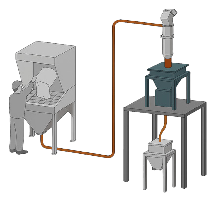 In many food, chemical, pharmaceutical, and other manufacturing plants, the most common up and in type of installation still involves a worker carrying bagged powders, pellets, and other bulk materials up stairs onto a mezzanine, or up a ladder, then dumping the dry solids into a surge hopper, feeder, or directly into a tank, mixer, or reactor. Though simple and seemingly inexpensive, this manual approach invites serious health and safety risks proven to cause expensive workers’ compensation claims and exposes the company to liability.